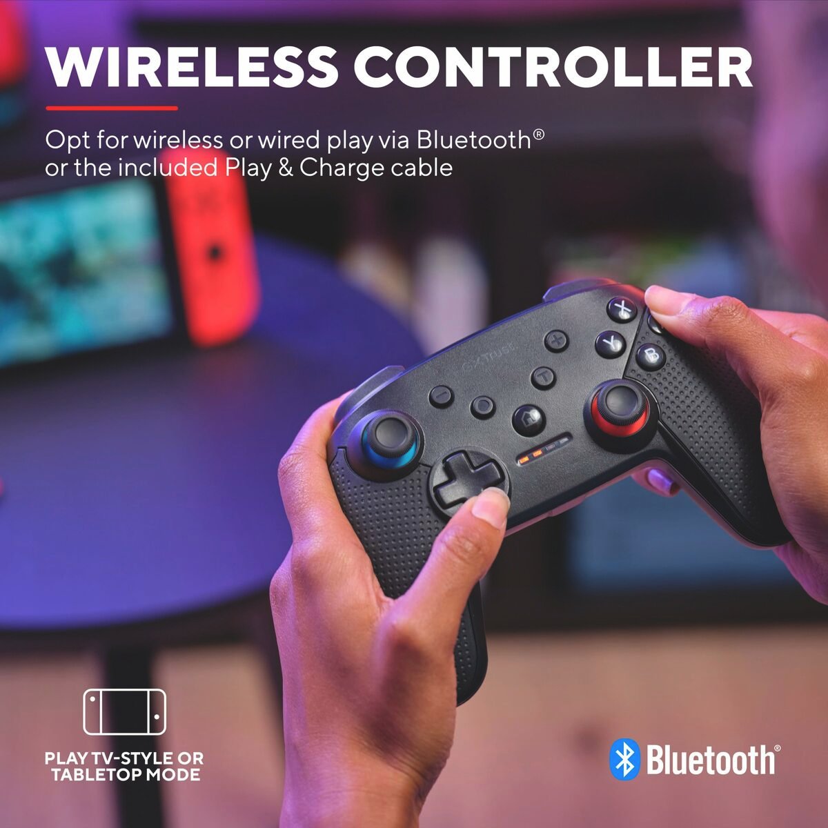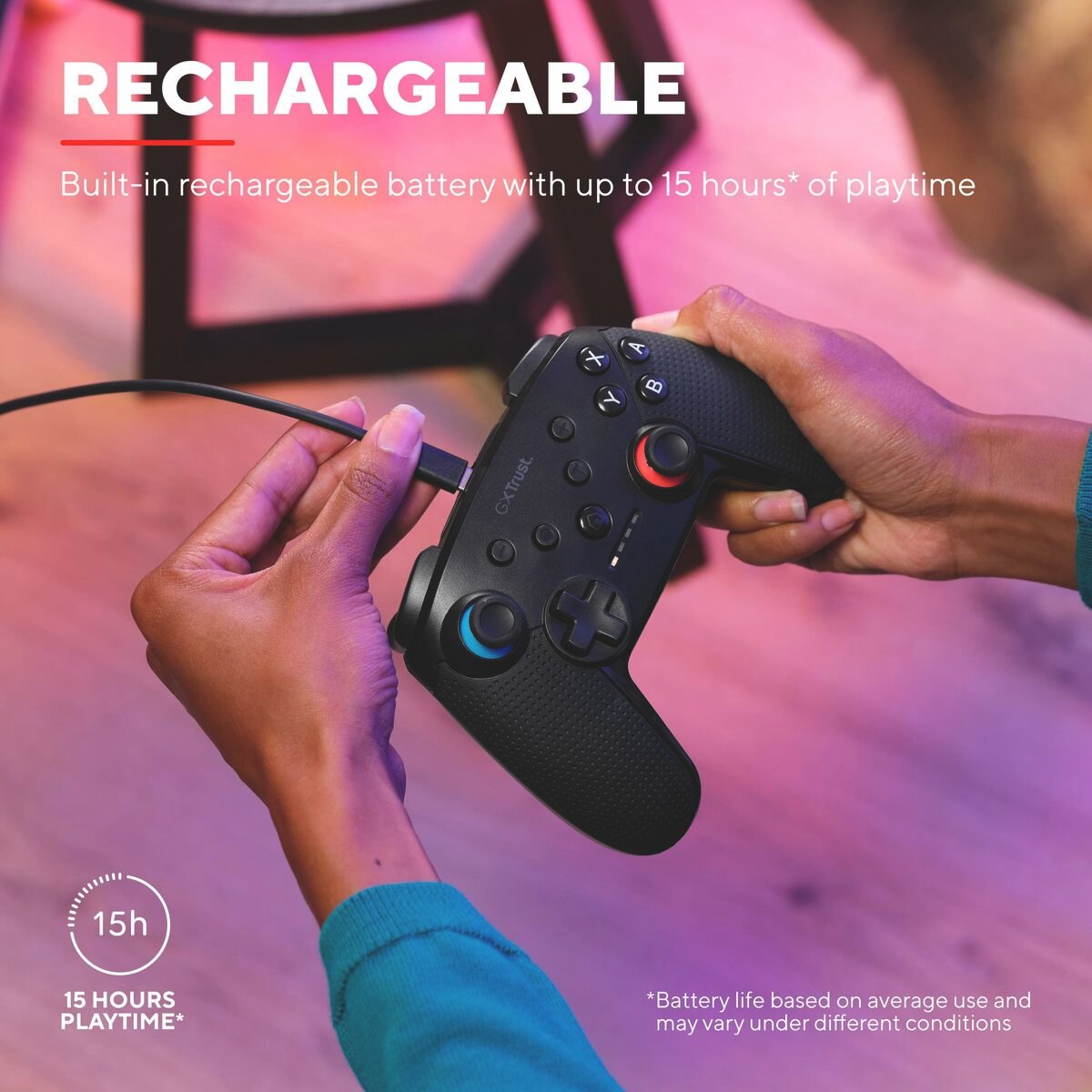 The Trust GXT 1246 MUTA Gaming Controller model 25425 is a versatile and ergonomic gamepad designed to offer a comfortable and modern gaming experience. Its black finish provides a sleek and professional style, while its wireless Bluetooth connectivity ensures freedom of movement and compatibility with multiple devices without signal loss. Additionally, it features a hybrid analog/digital control system that allows precise response in games requiring both quick presses and smooth movements, adapting to different genres and play styles. For easy charging and direct connection, it includes a USB-C port, compatible with standard chargers and ensuring efficient data transfer and charging. Its rechargeable battery provides enough autonomy for long gaming sessions without interruptions or frequent battery replacements. This wireless gamepad is a reliable choice for players seeking a balance between functionality, portability, and ergonomic design, ideal for those who value comfort and current technology in their gaming devices. In short, the Trust GXT 1246 MUTA represents a practical and technical solution for gamers needing a comfortable, up-to-date controller with flexible connectivity.