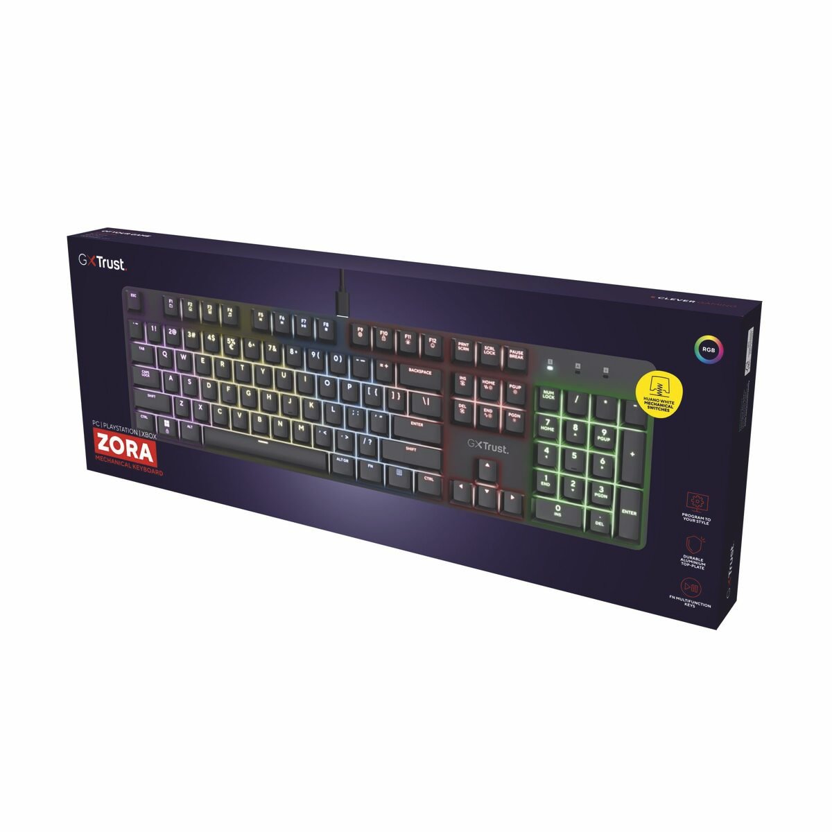 The Trust GXT 871 Gaming Keyboard model 25682 is a device specifically designed for gamers seeking precise and durable performance. This mechanical keyboard stands out for its sturdy build and tactile response, enabling faster and more reliable typing and gaming compared to membrane keyboards. It features a USB 2.0 connection, ensuring compatibility with most computers and a stable, lag-free connection, essential for competitive gaming sessions. Its design includes an integrated numeric keypad, ideal for users who need efficiency in both gaming and office or data entry tasks. Made in black, it offers an elegant and professional finish that fits any setup. Additionally, it provides advanced features like adjustable backlighting, which improves visibility in low-light environments and allows users to customize the keyboard’s look. The mechanical keys guarantee greater durability and precision with every keystroke, a key element for those seeking speed and accuracy during gameplay. Its ergonomic and adjustable design contributes to comfort even during long sessions, reducing fatigue and promoting proper posture. This Trust gaming keyboard represents a balanced solution for players who want to combine functionality, style, and reliable technical performance without compromising the quality expected from a well-known brand in the sector.
