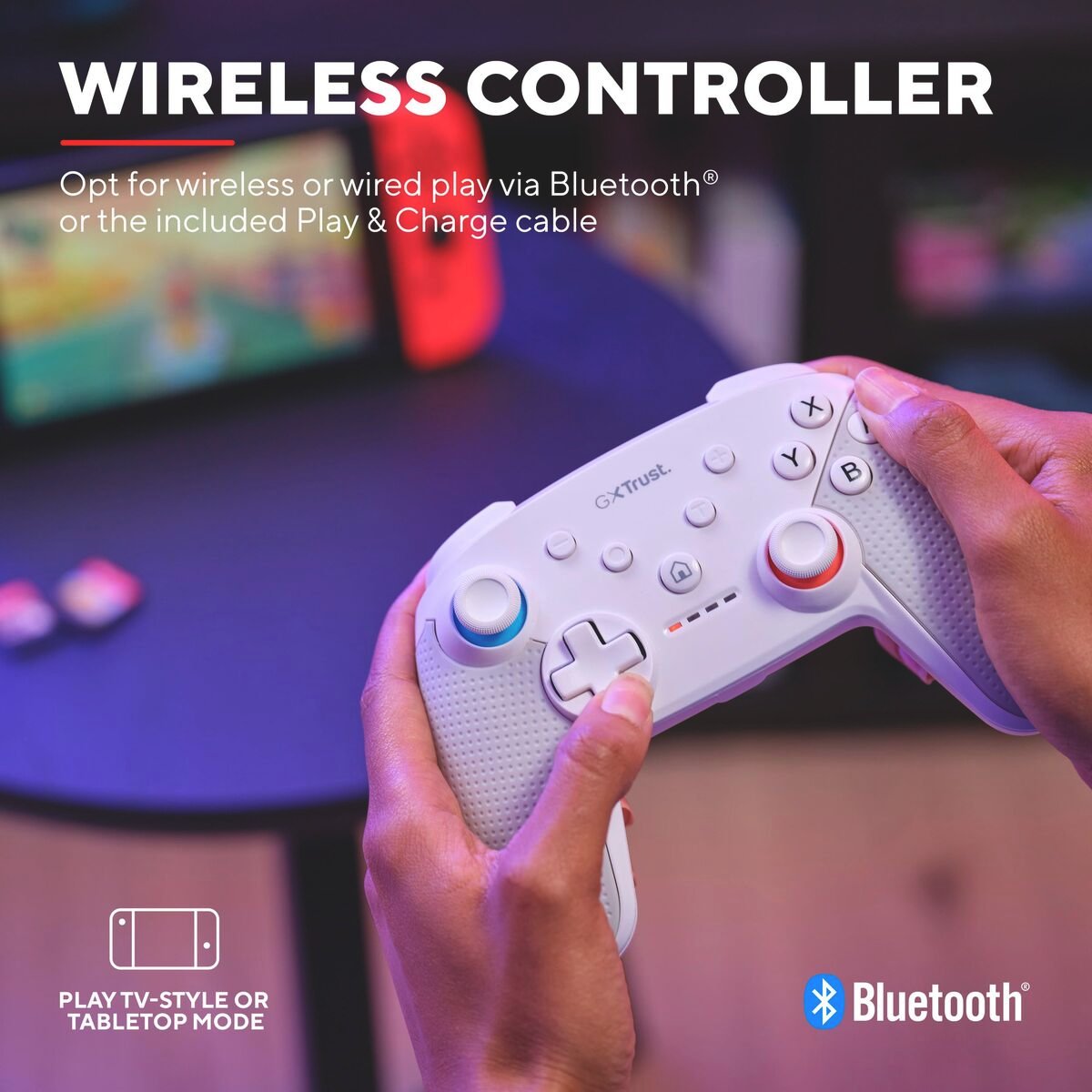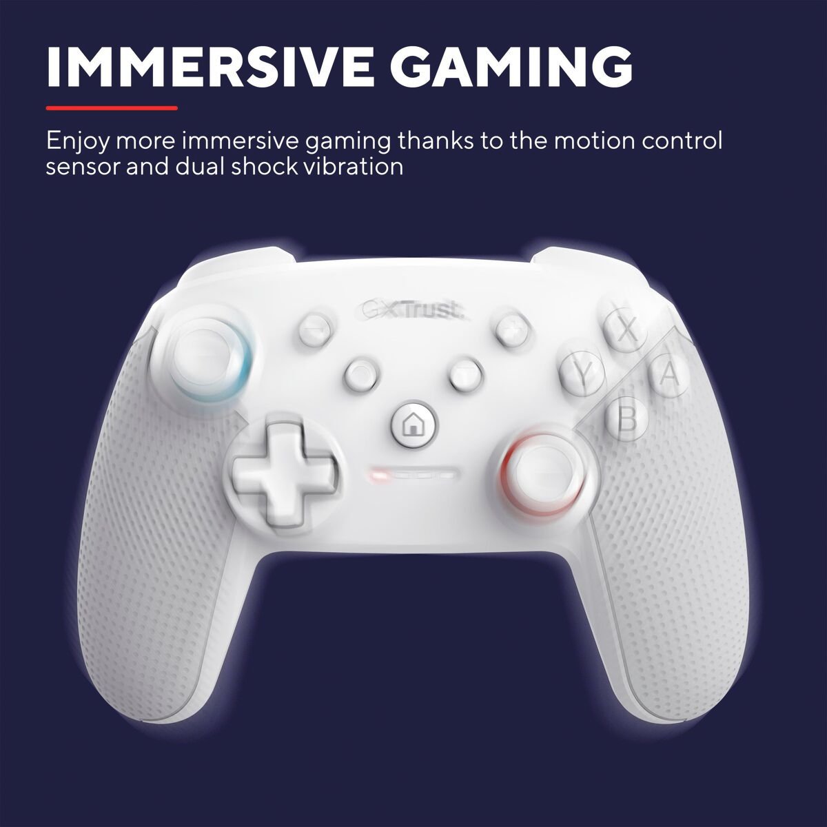 The Trust GXT 1246W is a pro controller for Nintendo Switch that combines advanced functionality and ergonomics for those seeking the best gaming experience on the console. Designed in an elegant white color, this controller stands out for its wireless Bluetooth connectivity, allowing you to play untethered with complete freedom of movement. Thanks to its rechargeable battery, it offers up to 15 hours of battery life on a single charge, making long gaming sessions easy, and it recharges conveniently via the included USB cable. It is compatible with both Nintendo Switch and Switch Lite, adapting to different platforms for precise control across all types of games. It features an optimized button layout, including D-pad, select, start, reset, and turbo buttons, providing total control in demanding matches and enabling quick configuration of special actions. Its dimensions (161 mm wide, 111 mm deep, and 61 mm high) are designed to fit comfortably in your hand, minimizing fatigue even after long hours of competitive or casual gaming. This pro controller uses Bluetooth technology for a stable and reliable connection, always responding precisely to every command, while its robust design ensures durability for intensive use. It includes controls in English and its main power source is the internal battery. The Trust GXT 1246W is a versatile and modern option for those who want to enjoy Nintendo Switch games with comfortable, precise, and visually appealing control.