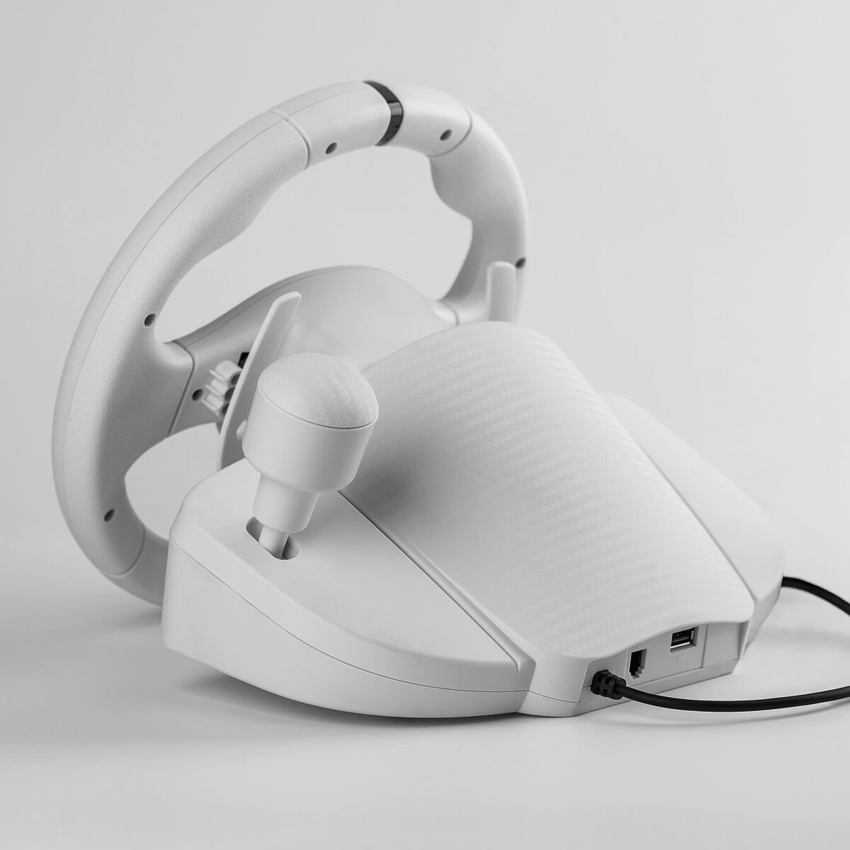 The Volante Racing Mars Gaming MWH-RSXONE is a peripheral designed to deliver a realistic and precise driving experience in racing simulators, compatible with multiple platforms such as Microsoft Xbox One, Nintendo Switch, Sony PlayStation 4, PlayStation 5, and PC. This set includes a steering wheel, pedals, and a manual gear shifter, key elements to faithfully replicate the feel of driving a real vehicle. Its white color design offers a modern and elegant finish that fits any gaming space. The wheel is made from durable materials and features a haptic feedback system that simulates the forces and vibrations of the terrain while driving, providing more immersive and precise control. The pedals have an ergonomic setup allowing comfortable and responsive operation for acceleration, braking, and clutch, essential for those aiming to improve their driving skills and realism in virtual competitions. Additionally, the manual gear shifter enables full control over the transmission, ideal for users who prefer a more authentic and demanding driving style. Thanks to its broad compatibility with major consoles and PC, this wheel connects easily and offers a complete simulation experience without the need for extra adapters. The Mars Gaming MWH-RSXONE is a balanced option combining functionality, durability, and versatility for players seeking a full wheel with pedals and manual shifter, suitable for different gaming systems and levels of racing simulator demands.